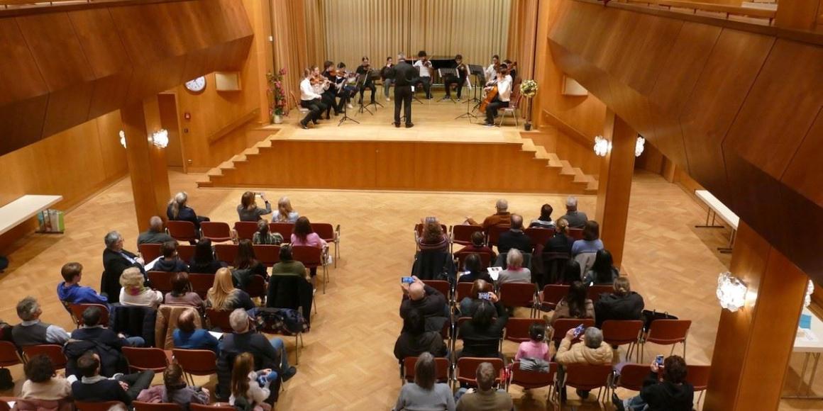 Unter der Leitung von Vladimir Rivkin präsentierte das Orchester der Musikschule Leimen am 22. November 2025 im Rosensaal ein stimmungsvolles und hochrangiges Konzert, das Mozarts Werke in besonderer Klarheit und Lebendigkeit zeigte. Als Solist überzeugte Ausnahmetalent Christian Palmetshofer (Klasse Sergej Esrer) am Klavier mit einer feinfühligen und musikalisch ausgereiften Interpretation des Klavierkonzerts A-Dur KV 414, dessen eleganter, kammermusikalischer Charakter im Zusammenspiel mit dem Kammerorchester besonders gut zur Geltung kam.